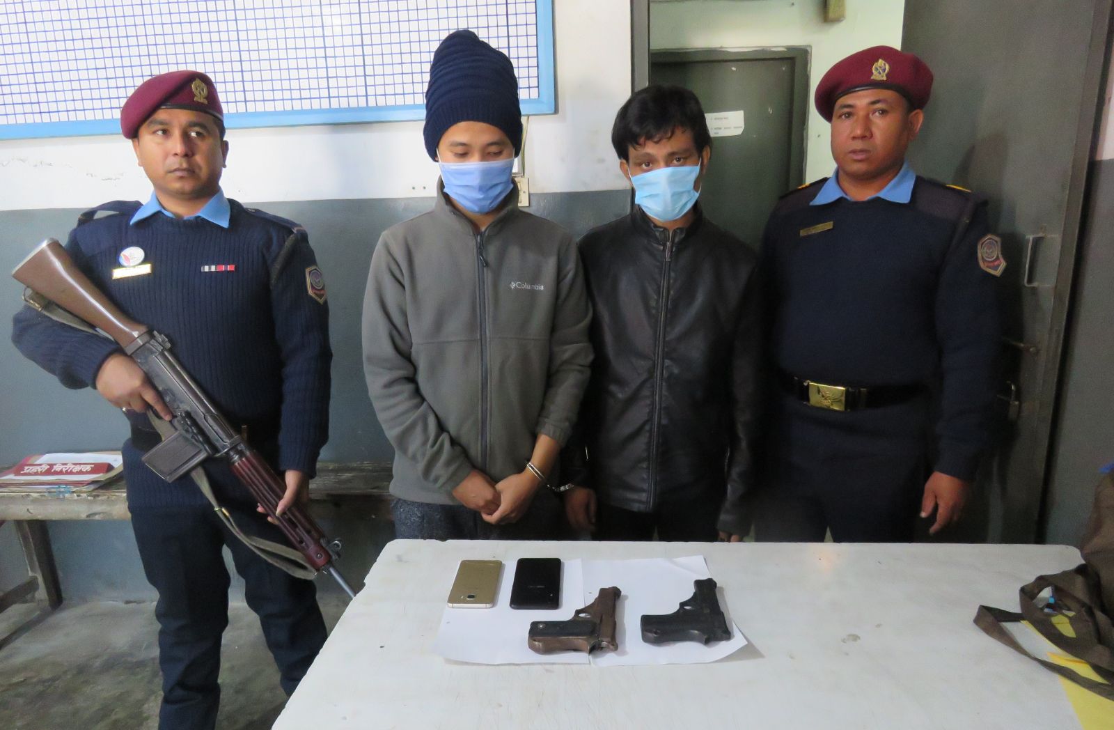 काठमाडौ । अटोमेटिक पेस्तोलसहित जनकपुरधामबाट प्रहरीले दुई युवालाई पक्राउ गरेको छ । पक्राउ पर्नेमा महोत्तरीको जलेश्वर नगरपालिका–९ घर भई हाल जनकपुरधाम उपमहानगरपालिका–४ बस्ने ३० बर्षीय इन्द्रेशकुमार सिंह र महोत्तरी मनरासिसवा नगरपालिका–१ घर भई हाल जनकपुरधाम उपमहानगरपालिका–८ बस्ने १९ वर्षीय लोटस भन्ने अभिषेककुमार सिंह रहेको प्रहरीले जनाएको छ ।