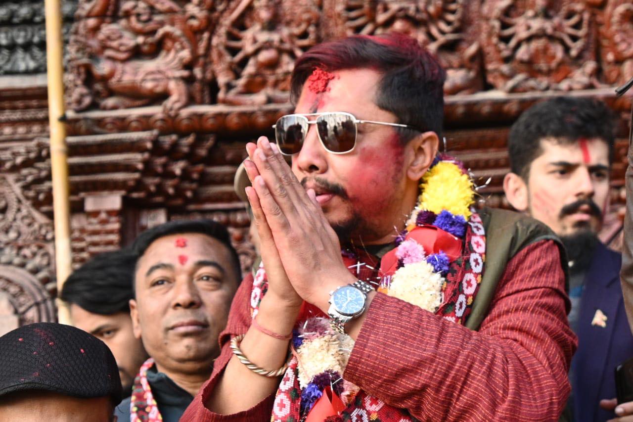 राष्ट्रिय स्वतन्त्र पार्टीबाट काठमाडौं ८ मा विजयी भएका विराजभक्त श्रेष्ठले निकालेको विजयी जुलुस । तस्बिर : न्युज कारखाना