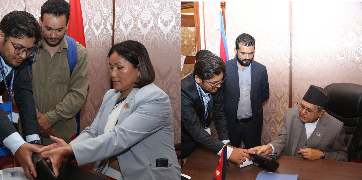 काठमाडौं । संघीय संसद सचिवालयले विद्युतीय हाजिर जडान गरेको छ । संसदका सदस्यहरुको विद्युतीय प्रणालीबाट हाजिर गरिने भएको छ । सोमबार प्रतिनिधिसभाका सभामुख र उपसभामुखले विद्युतीय हाजिरीका लागि वायोमेट्रिक प्रणालीबाट नाम दर्ता गराएका छन् ।