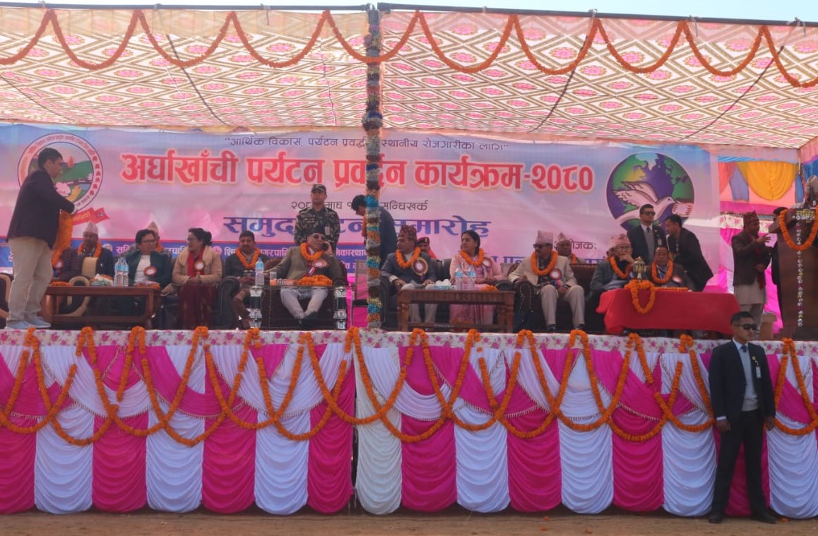 अर्घाखाँची । प्रधानमन्त्री पुष्पकमल दाहाल ‘प्रचण्ड’ले अघिल्लो वर्ष निजी क्षेत्र सङ्कटमा रहेकामा यस वर्ष क्रमशः सुधार आई उद्यमी व्यवसायीमा उत्साह सञ्चार भएको बताएका छन् । नेपाल पत्रकार महासङ्घ अर्घाखाँचीद्वारा सन्धिखर्कमा आज आयोजित ‘आर्थिक विकास, पर्यटन प्रवद्र्धन, स्थानीय रोजगारीका लागि अर्घाखाँची पर्यटन प्रवद्र्धन कार्यक्रम’लाई सम्बोधन गर्दै प्रधानमन्त्रीले अघिल्लो वर्ष आर्थिक सङ्कटका कारण सार्वजनिक मेला–महोत्सव विरलै हुने गरेकामा यस वर्ष अभियानकै रुपमा महोत्सवहरु आयोजना हुनु अर्थतन्त्र सुधारका दृष्टिले शुभसङ्केत भएको बताए ।