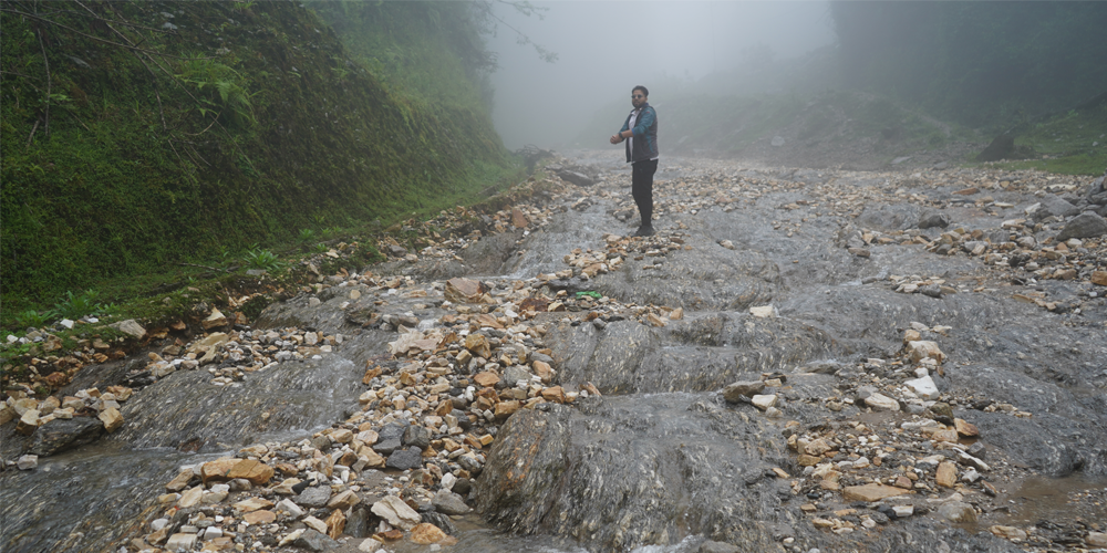 सडक अवरुद्ध भएपछि भोटखोलाबाट सदरमुकाम खाँदबारी आउने बस, बोलेर गाडी र दर्जनौँ यात्रु नयाँबस्ती नजिकै अलपत्र परेका थिए ।