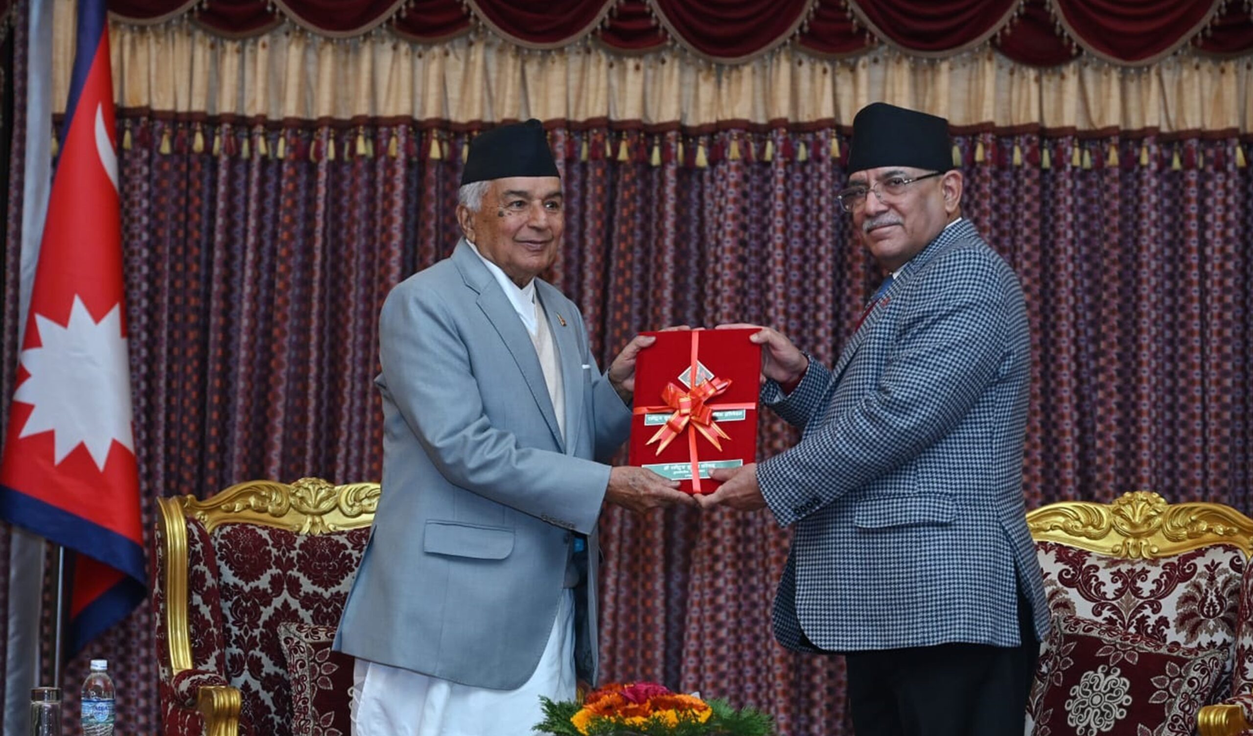 काठमाडौँ । राष्ट्रपति रामचन्द्र पौडेलसमक्ष प्रधानमन्त्री तथा राष्ट्रिय सुरक्षा परिषद्का अध्यक्ष पुष्पकमल दाहाल‘प्रचण्ड’ले आज राष्ट्रिय सुरक्षा परिषद्को वार्षिक प्रतिवेदन पेस गरेका छन् ।