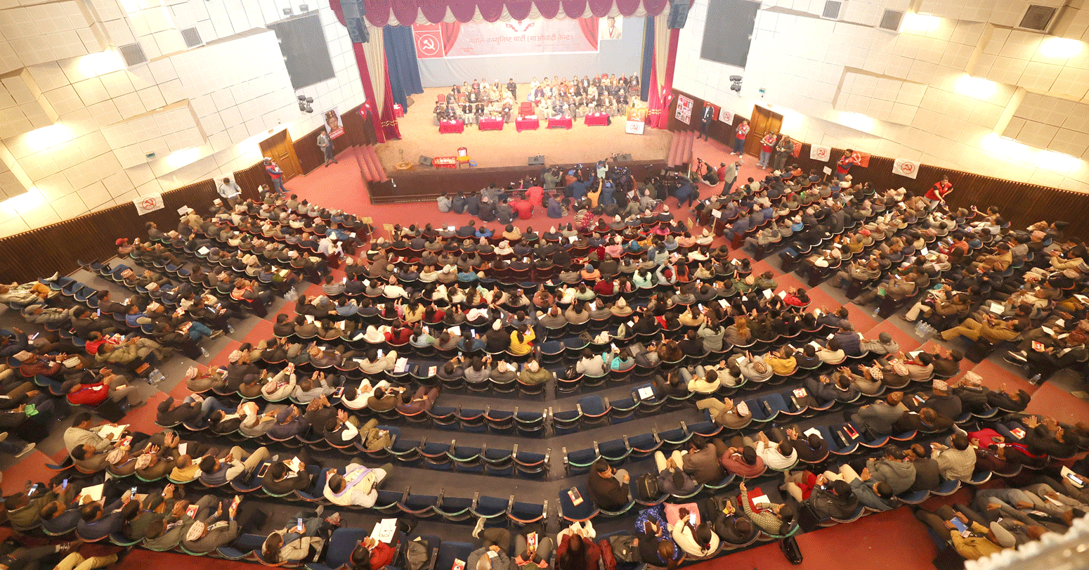 काठमाडौँ । नेपाल कम्युनिष्ट पार्टी (माओवादी केन्द्र)को प्रस्तावित विधानमाथि सामूहिक छलफल जारी छ । मङ्गलबारदेखि राजधानीमा सुरु भएको प्रथम विधान अधिवेशनमा २० वटा समूह बनाएर विधानमा छलफल भइरहेको हो ।