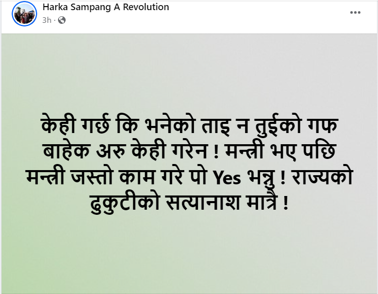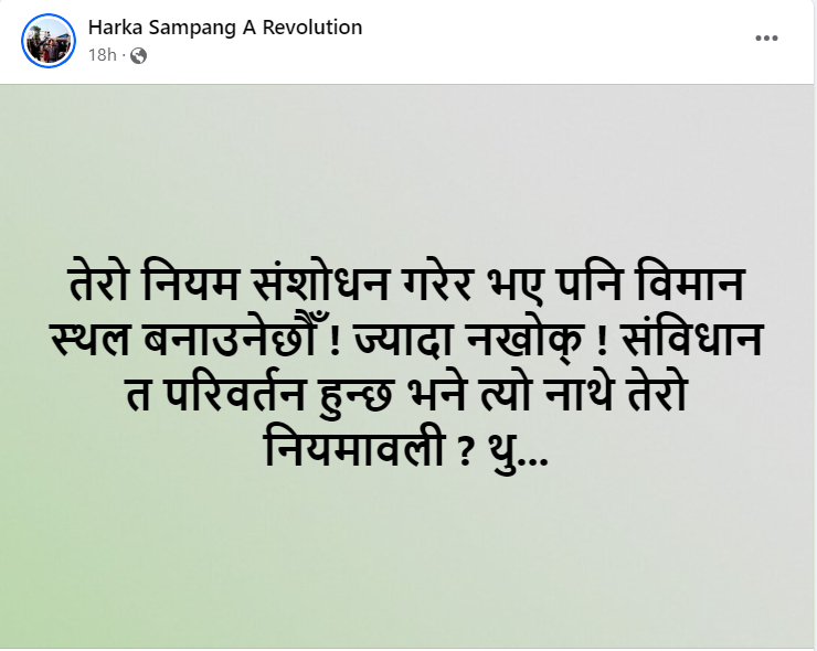 विमानस्थल बनाउन उपयुक्त नहुने प्राधिकरणको निष्कर्षपछि उनले सामाजिक सञ्जालमार्फत् आक्रोश व्यक्त गरेका हुन् । संस्कृति, पर्यटन तथा नागरिक उड्ड्यनमन्त्री सुदन किरातीसँग उनले आक्रोश पोखेका छन् ।