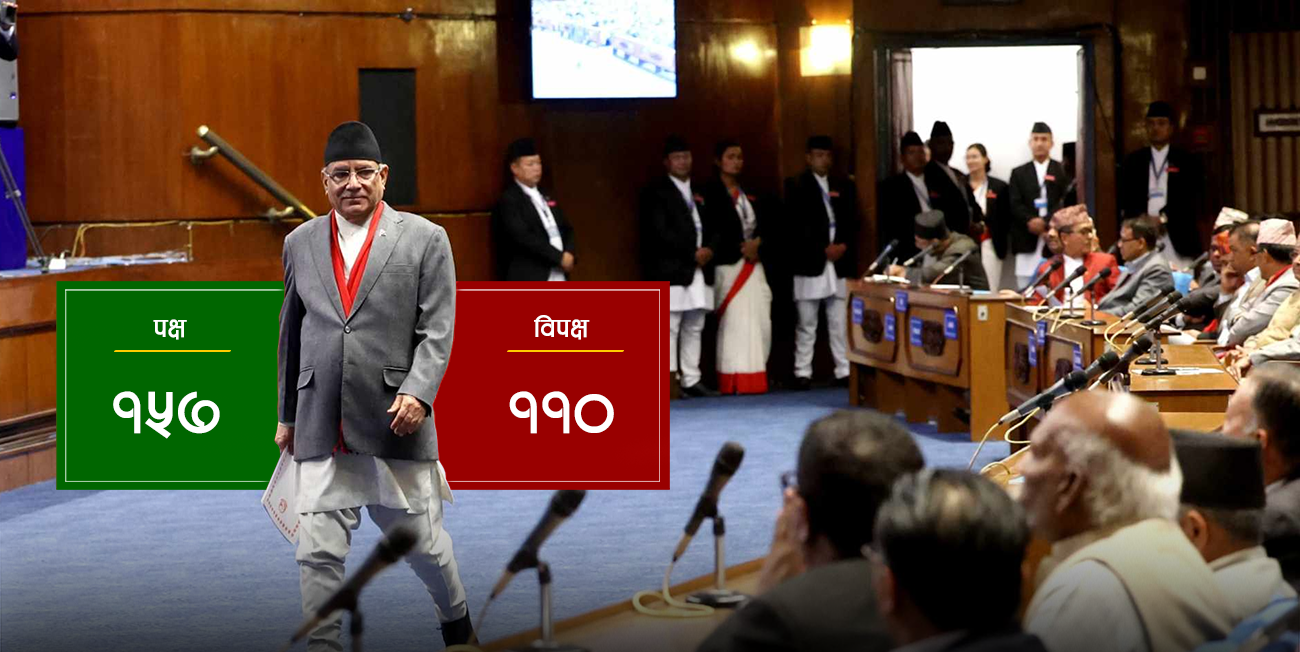 काठमाडौं । प्रधानमन्त्री पुष्पकमल दाहाल प्रचण्डले विश्वासको मत पाएका छन् ।