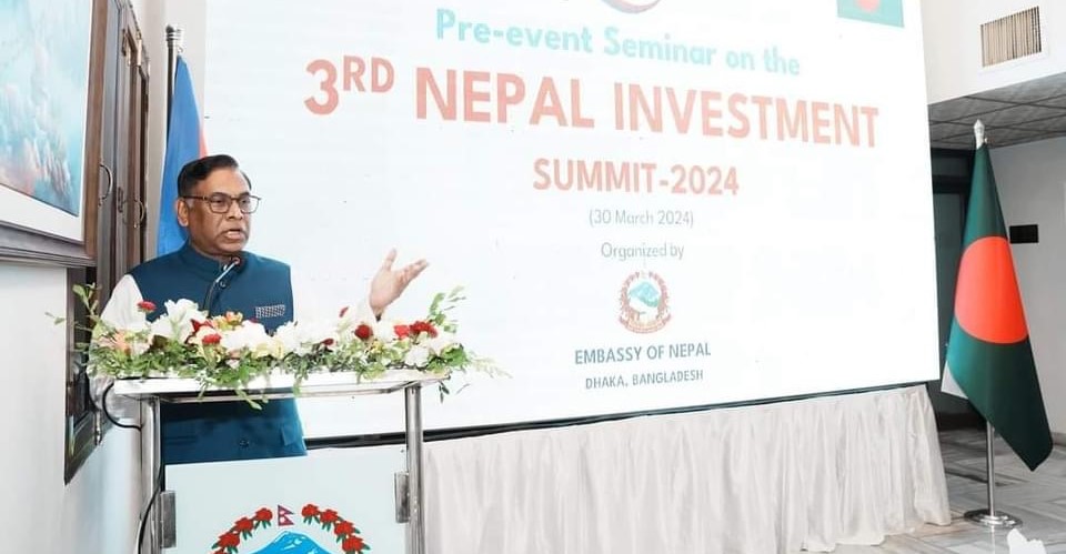 काठमाडौँ । आगामी वैशाखमा यहाँ आयोजना हुने तेस्रो लगानी सम्मेलनमा बङ्गलादेशका उद्यमी–व्यवसायीलाई लगानीका निम्ति आकर्षित गर्ने उद्देश्यले शनिबार ढाकास्थित नेपाली राजदूतावासमा कार्यशाला आयोजना गरियो ।