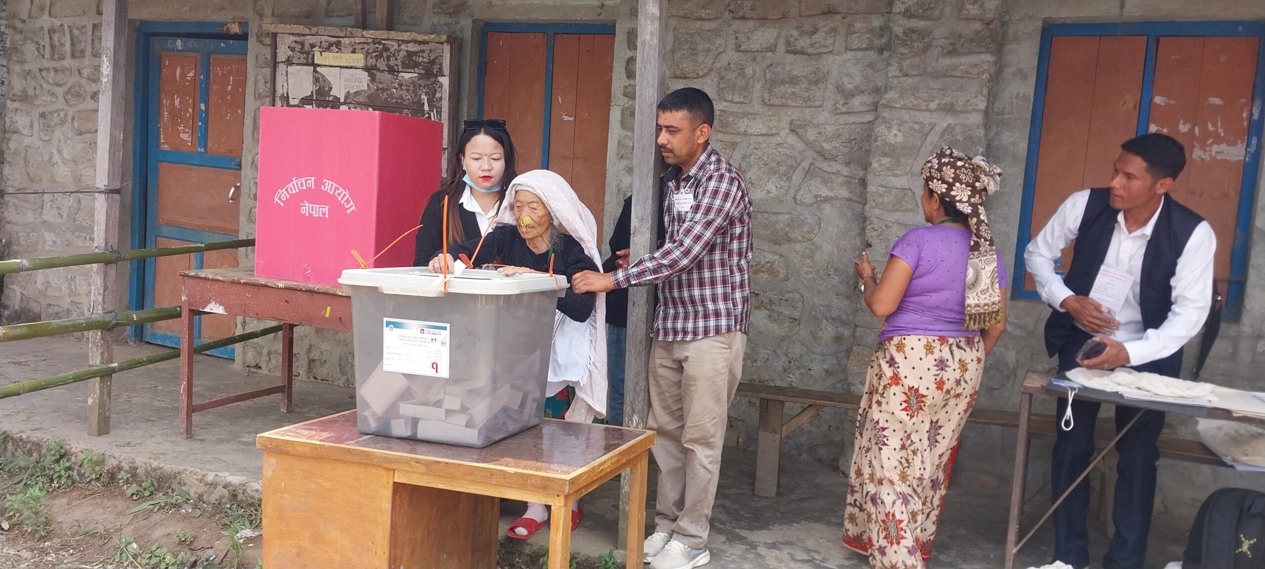 इलाम । इलामको माङसेबुङ गाउँपालिका(२ हुलाककी ७९ वर्षीया ज्येष्ठ नागरिक महिला गङ्गादेवी राई बिहानै लठ्ठी टेक्दै नजिकै रहेको जनताकल्याण आधारभूत विद्यालयस्थित मतदान केन्द्रमा पुगे । ज्येष्ठ नागरिकलाई लाइनमा बस्नु नपर्ने भएकाले स्वयम्सेवकले प्रवेशद्वारबाटभित्र मतदानस्थलमा प्रवेश गराए । उनले आफूले मन परेको उम्मेद्वारको चिन्हमा मतदान गरेर बाहिर निस्किए ।