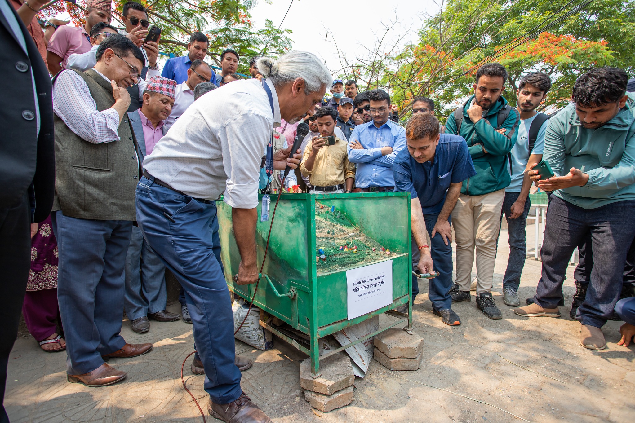 नेपाल जियोटेक्निकल सोसाइटीका अध्यक्ष मन्दिप सुवेदीले सही ढंगले जमीनको उपयोग नगर्दा र विकास निर्माणको क्रममा लापरवाह बढ्दै गएकाले पहिरोको बारेमा व्यापक जनचेतना अभिवृद्धि गर्नका लागि बिहानी कार्यक्रम समुदायस्तरमा गरिएको बताए । पहिरोबाट बच्ने उपायबारे नमुना अभ्यास प्रदर्शनी (सिम्युलेसन)) एवं पहिरोबाट बच्न पूर्व तयारीका साधानहरू प्रदर्शित गरिएको थियो ।
