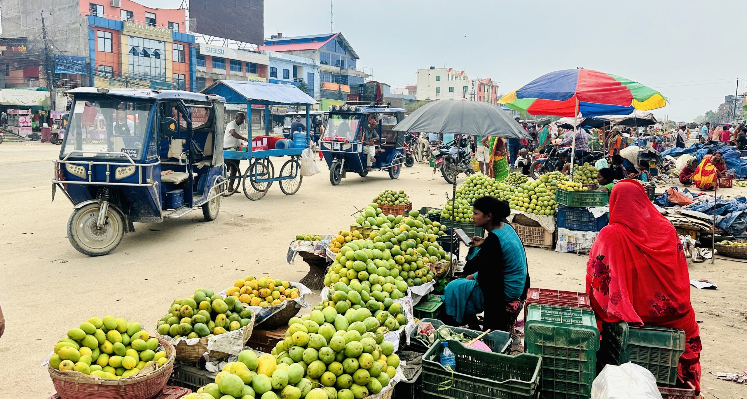 “नजिकै खाली जग्गा नहुँदा समस्या भएको छ,” प्रमुख हलुवाईले राससलाई भने, “व्यवस्थित बजार बनाउन सम्भव भइरहेको छैन । हामी यसलाई कसरी व्यवस्थित गर्न सकिन्छ भनेर उपाय खोजिरहेका छौँ । अहिले आँप खरिद बिक्रि भइरहेको ठाउँलाई पनि सडक क्षेत्रमा असर नपुग्ने गरी कम्तीमा दश फिट पछाडि सार्न सकिन्छ । त्यसका लागि पहल गरिरहेका छौँ ।”