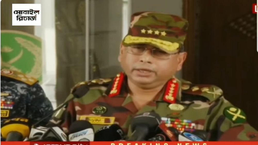 सेना प्रमुख जनरल उज जमानले देशमा अन्तरिम सरकार बनाउने घोषणा गरेका हुन् । उनले राष्ट्रका नाममा सम्बोधन गरेका छन् ।