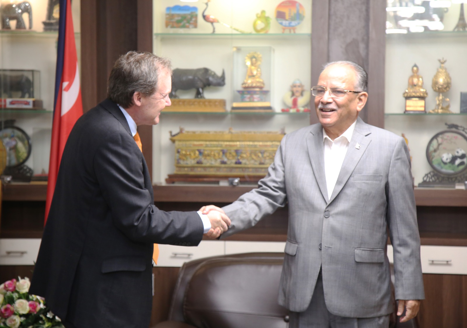 काठमाडौं । पूर्वप्रधानमन्त्री एवं नेकपा माओवादी केन्द्रका अध्यक्ष पुष्पकमल दाहाल ‘प्रचण्ड’सँग नेपालका लागि संयुक्त अधिराज्य बेलायतका राजदूत रोब फेनले भेट गरेका छन्।