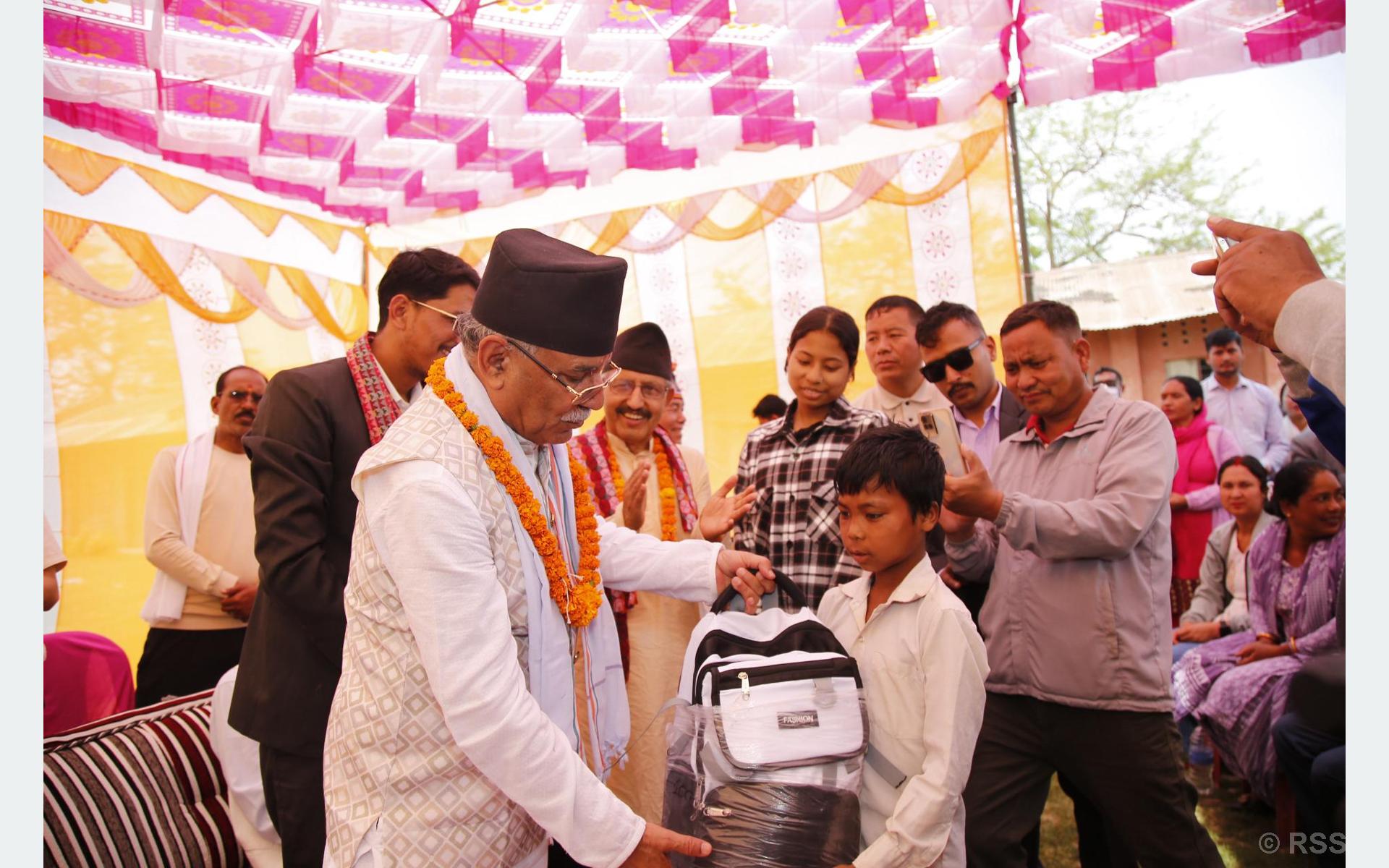 अध्यक्ष दाहालले अभिभावकविहीन तथा सहिद परिवारका बालबालिकाको शिक्षाको सुनिश्चितताप्रति पार्टी सधैं प्रतिबद्ध रहेको उल्लेख गर्दै सामाजिक न्याय र समानताका निम्ति माओवादीले उठाएका सवाल अझै सान्दर्भिक छन् भने । त्यस अवसरमा विद्यालयका शिक्षक, विद्यार्थी, अभिभावक तथा पार्टीका स्थानीय नेता तथा कार्यकर्ताको उपस्थिति थियो । रासस