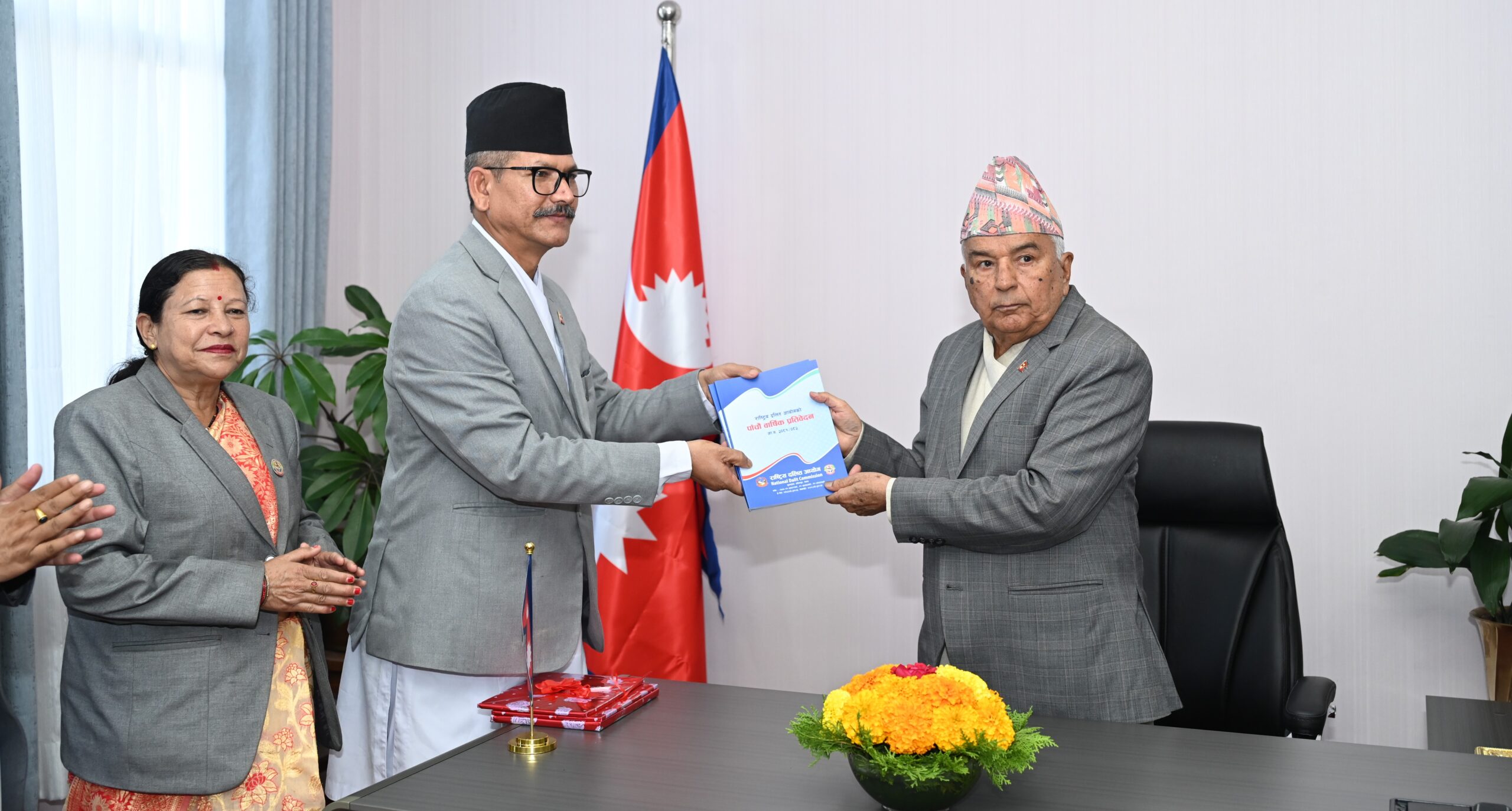 काठमाडौँ, । राष्ट्रपति रामचन्द्र पौडेलसमक्ष राष्ट्रिय दलित आयोगले गत आर्थिक वर्ष २०८१/०८२ को वार्षिक प्रतिवेदन पेस गरेको छ । आयोगका अध्यक्ष देवराज विश्वकर्माले आज राष्ट्रपतिको कार्यालयमा आयोजित कार्यक्रममा नेपालको संविधानको धारा २९४ बमोजिम सो प्रतिवेदन पेस गरेको राष्ट्रपतिको कार्यालयले जनाएको छ ।