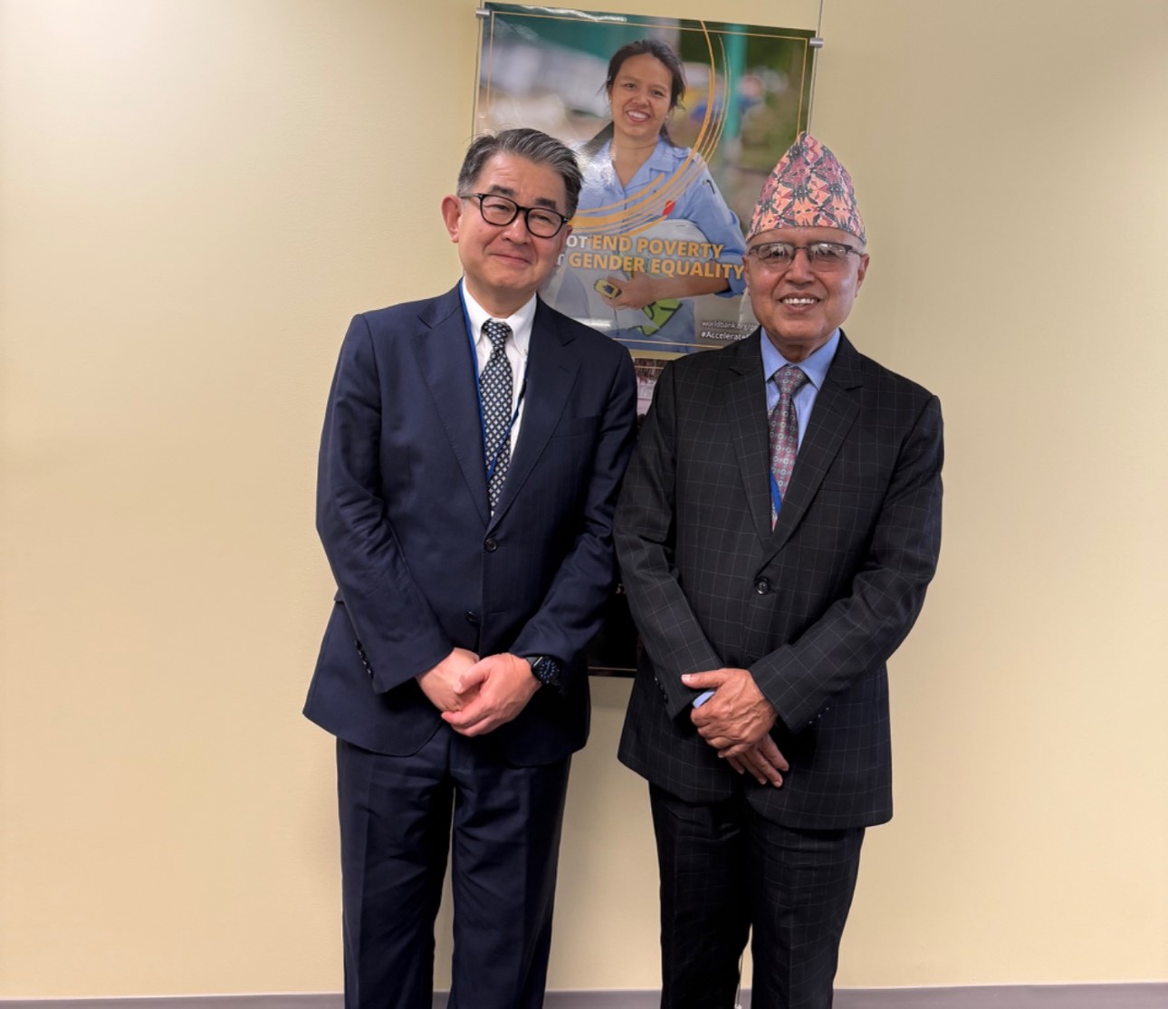 वाशिङ्गटन डिसी अमेरिका । अर्थमन्त्री रामेश्वरप्रसाद खनाल र जापान इन्टरनेशनल कोअपरेशन एजेन्सी जाइकाका वरिष्ठ उपाध्यक्ष हारा सोईबीच मङ्गलवार यहाँ भेटवार्ता भएको छ ।