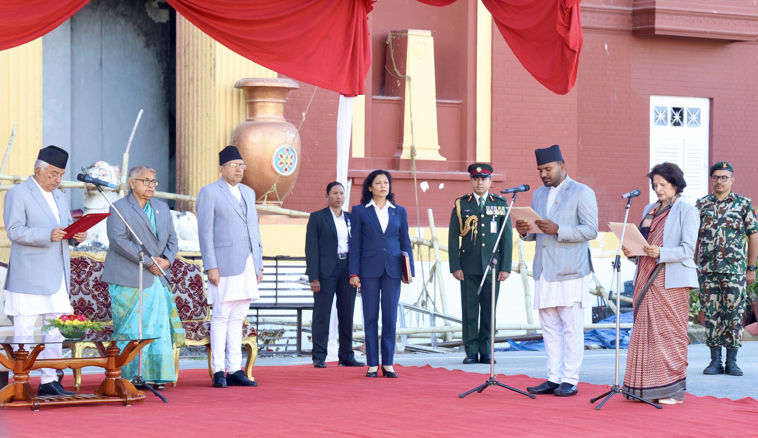 राष्ट्रपति रामचन्द्र पौडेलले राष्ट्रपति कार्यालय, शीतलनिवासमा आयोजित विशेष समारोहमा नवनियुक्त स्वास्थ्य तथा जनसङ्ख्यामन्त्री डा सुधा गौतम र युवा तथा खेलकुदमन्त्री बब्लु गुप्ताले सपथ लिएका हुन् । यसअघि आज बिहान चार मन्त्रीले शपथ लिने भनिए पनि अन्तिम समयमा दुई जना मन्त्रीको मात्रै शपथ भएको हो ।