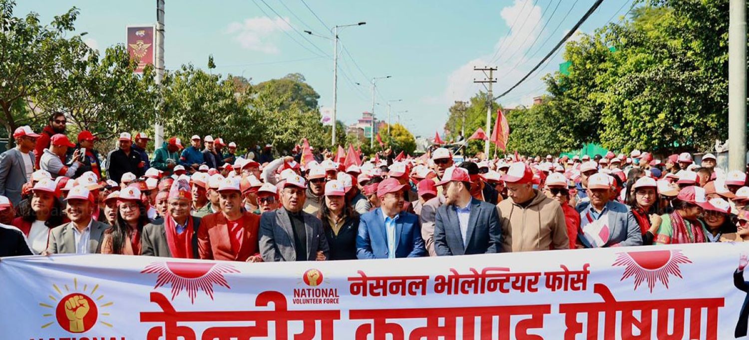 नेकपा एमालेले पार्टीको नीति, नेतृत्व तथा सामाजिक सुरक्षालाई सबल बनाउने उद्देश्यसहित आज ‘नेशनल भोलेन्टियर फोर्स (एनभीएफ)’ घोषणा गर्न लागेको छ। घोषणा समारोहअघि एमाले निकट युवाहरूले काठमाडौंमा र्याली निकालेर फोर्सप्रति ऐक्यबद्धता जनाएका छन्।