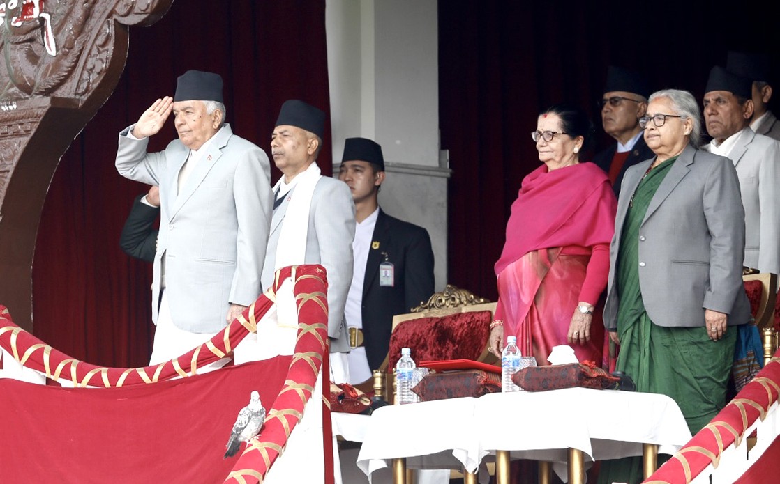 काठमाडौँ, । राष्ट्रपति रामचन्द्र पौडेल राष्ट्रिय प्रजातन्त्र दिवस २०८२ को अवसरमा आज सैनिक मञ्च टुडिखेलमा आयोजित विशेष समारोहमा सरिक भएका छन् ।