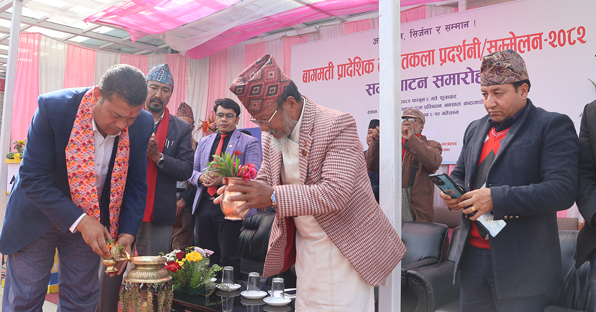 काठमाडौँ, । नेपाल ललितकला प्रज्ञा–प्रतिष्ठान र संस्कृति तथा पर्यटन मन्त्रालय, बागमती प्रदेशको आयोजनामा आजदेखि काठमाडौँमा ‘बागमती प्रादेशिक ललितकला प्रदर्शनी तथा सम्मेलन २०८२’ सुरु भएको छ ।