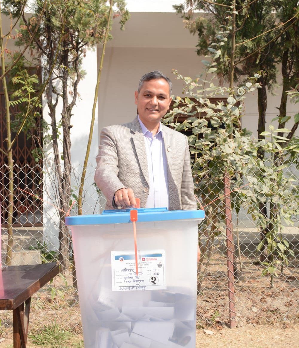 ललितपुर महानगरपालिकास्थित सानेपाको टीका विध्याश्रम मावि मतदान केन्द्रमा मतदान गरेका छन् ।